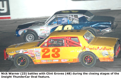 Warner’s superb night continued in the Insight ThunderCar Oval main event,