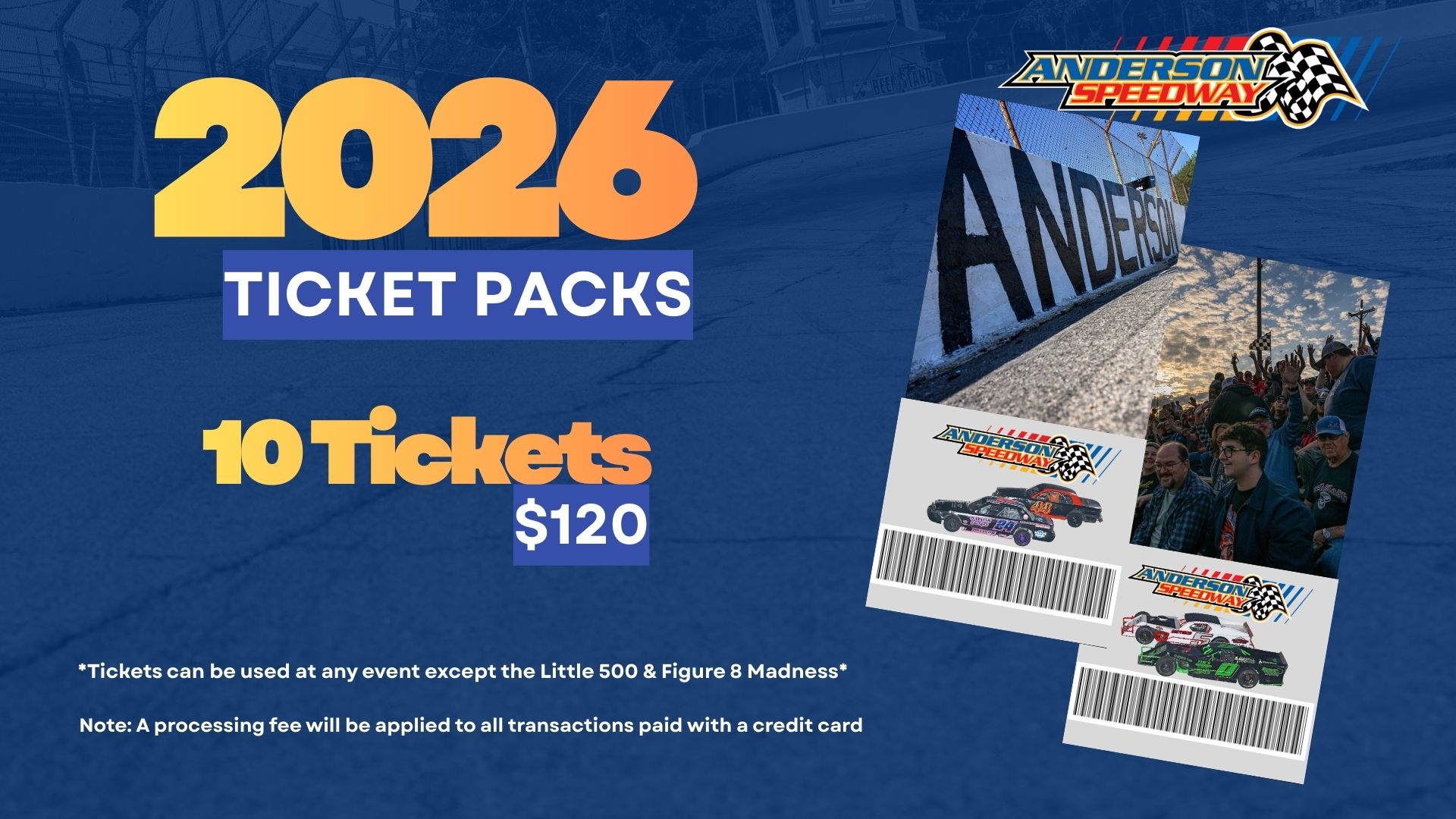 Tickets can be used at any event in 2026 except for the Little 500 and 4th of July Figure 8 Madness.