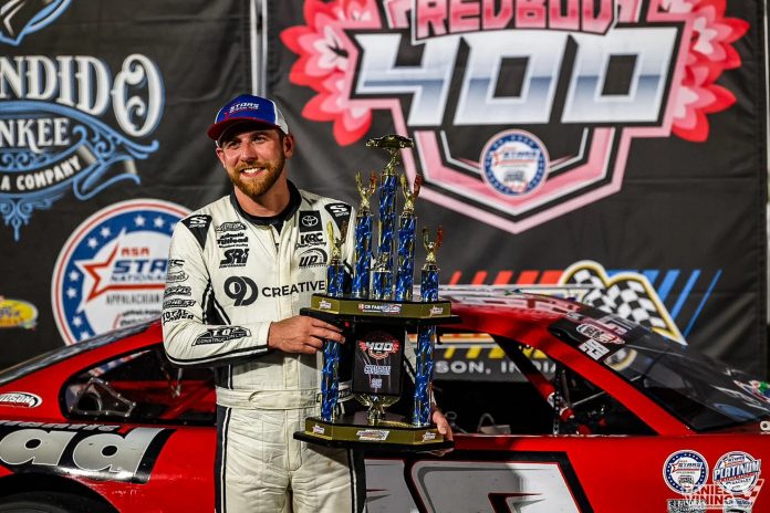 Canadian Cole Butcher led the final 78 laps to capture the 59th running of the CB Fabricating Redbud 400 at Anderson Speedway.